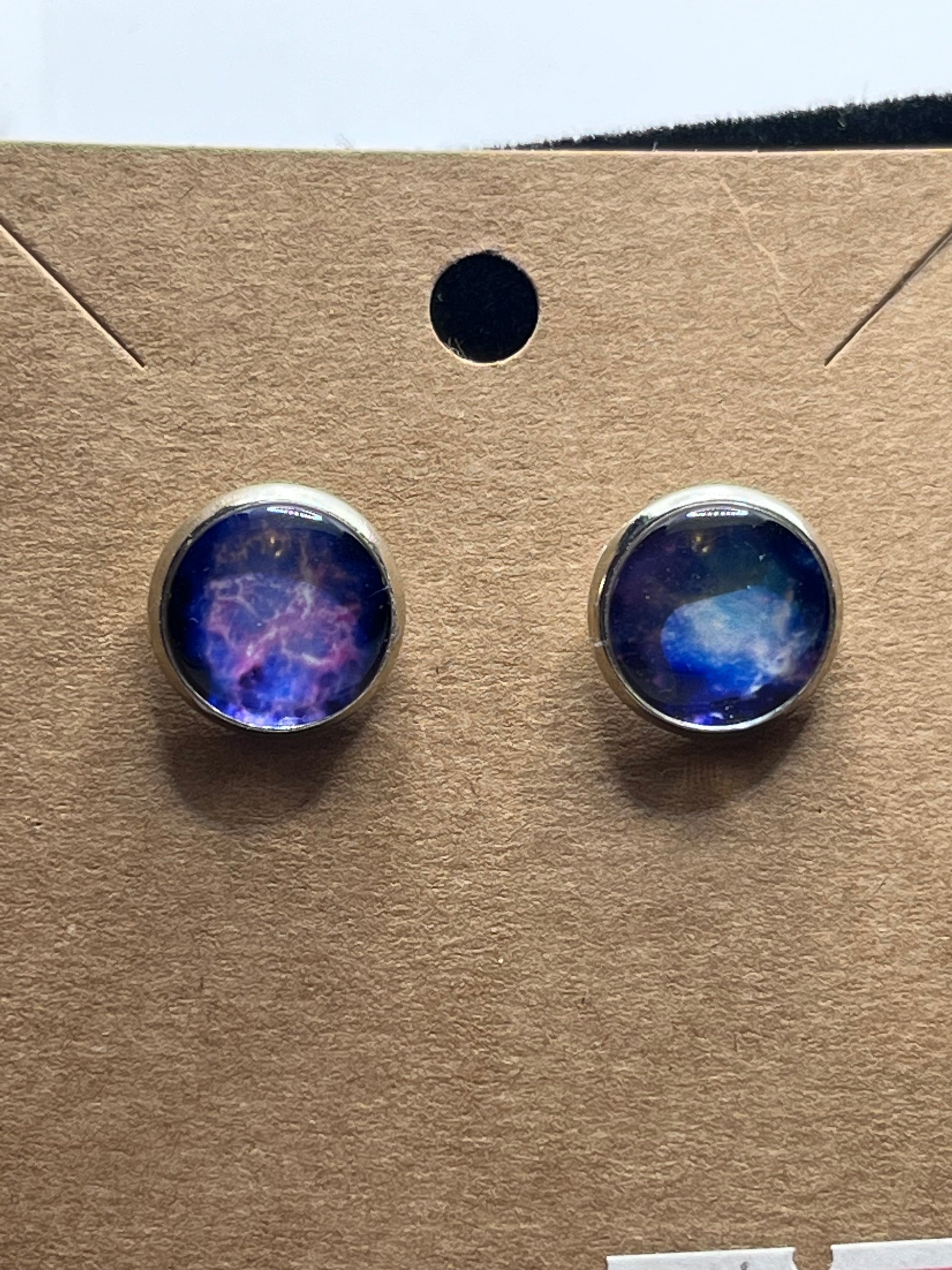 These earrings are hypoallergenic. The earrings come in silver or gold. The Cosmos picture is 12mm.