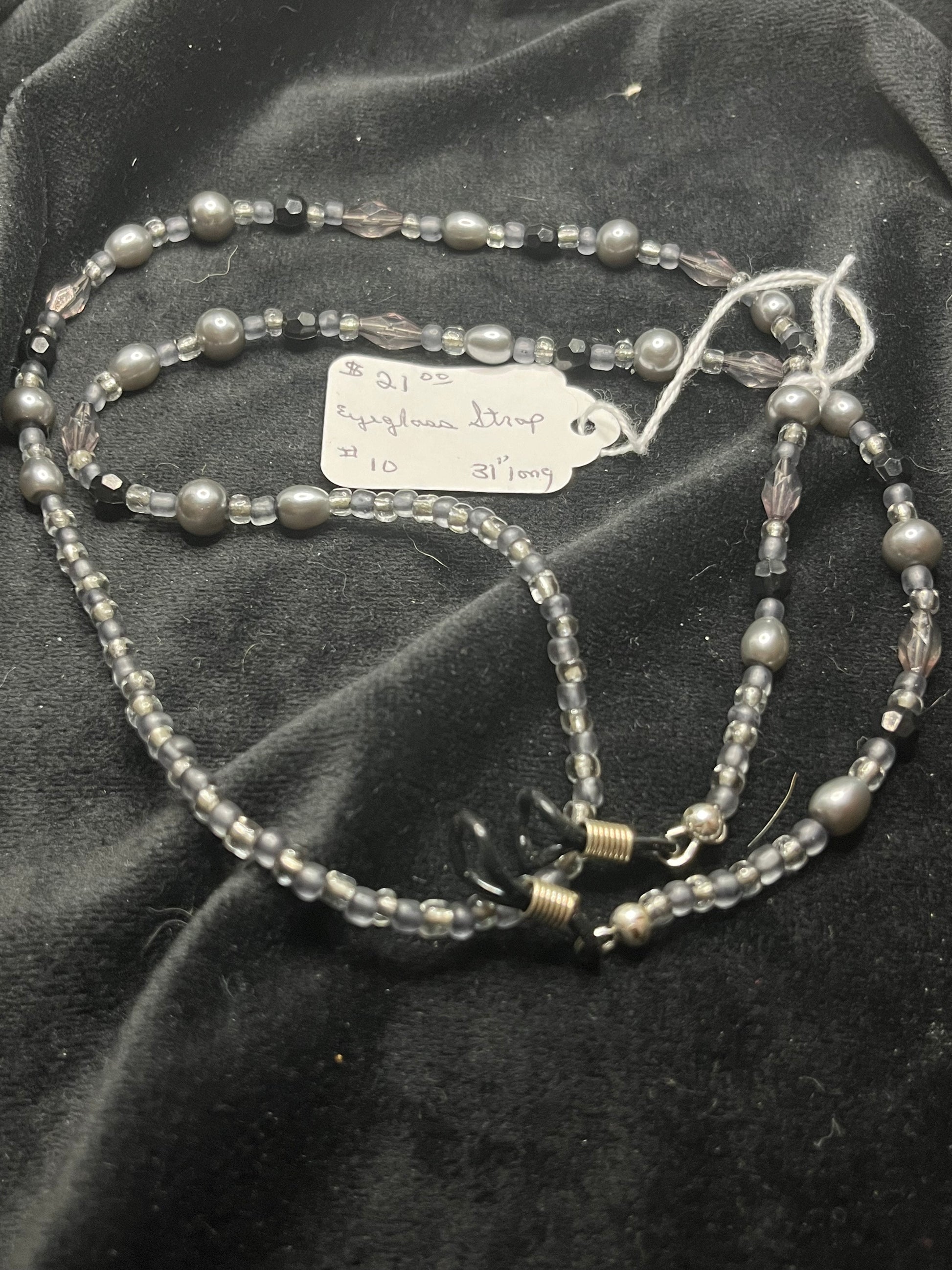 Black grey bead eyeglass strap, 31”