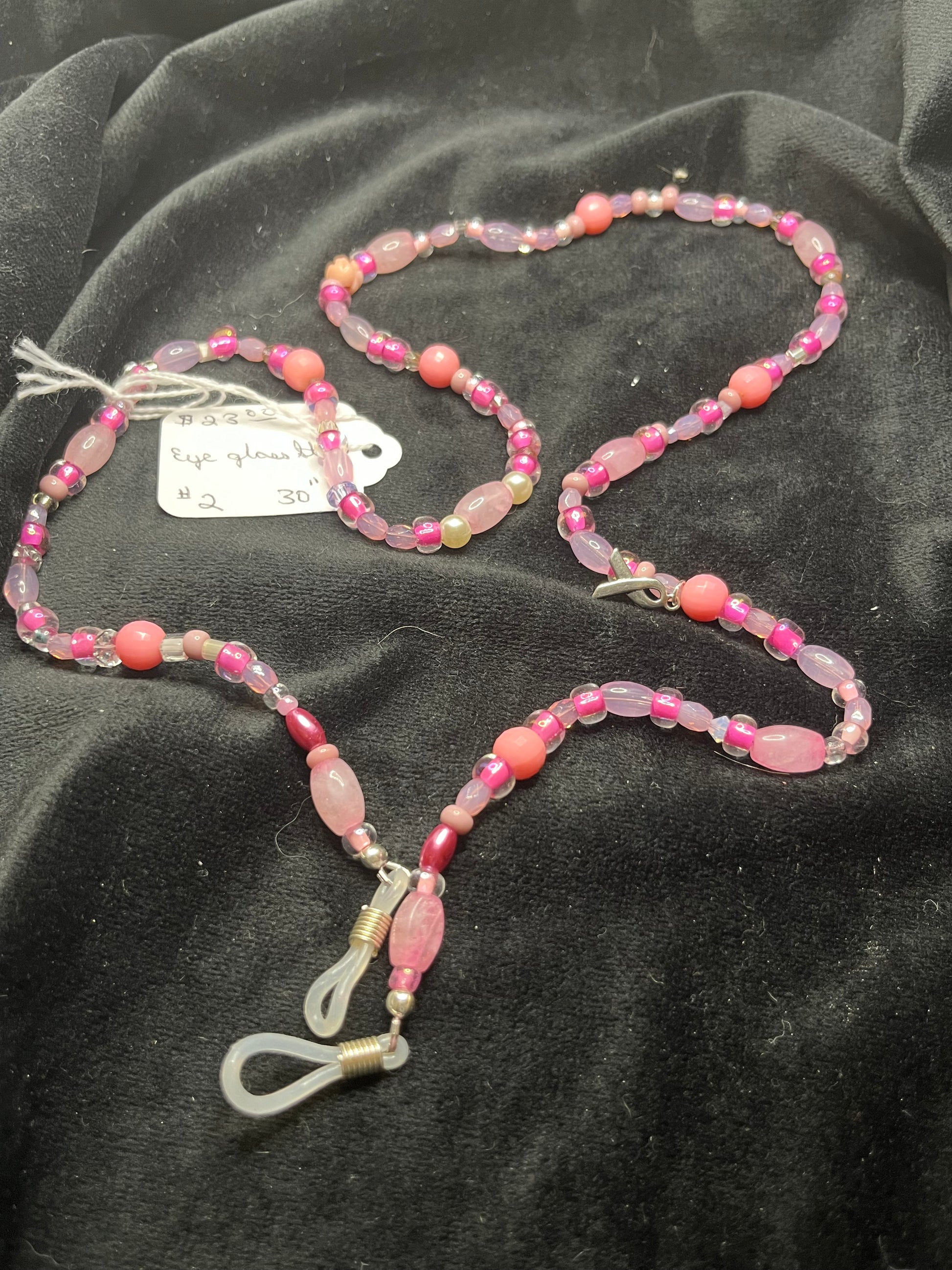 Pink bead eyeglass strap with awareness ribbon, 30”