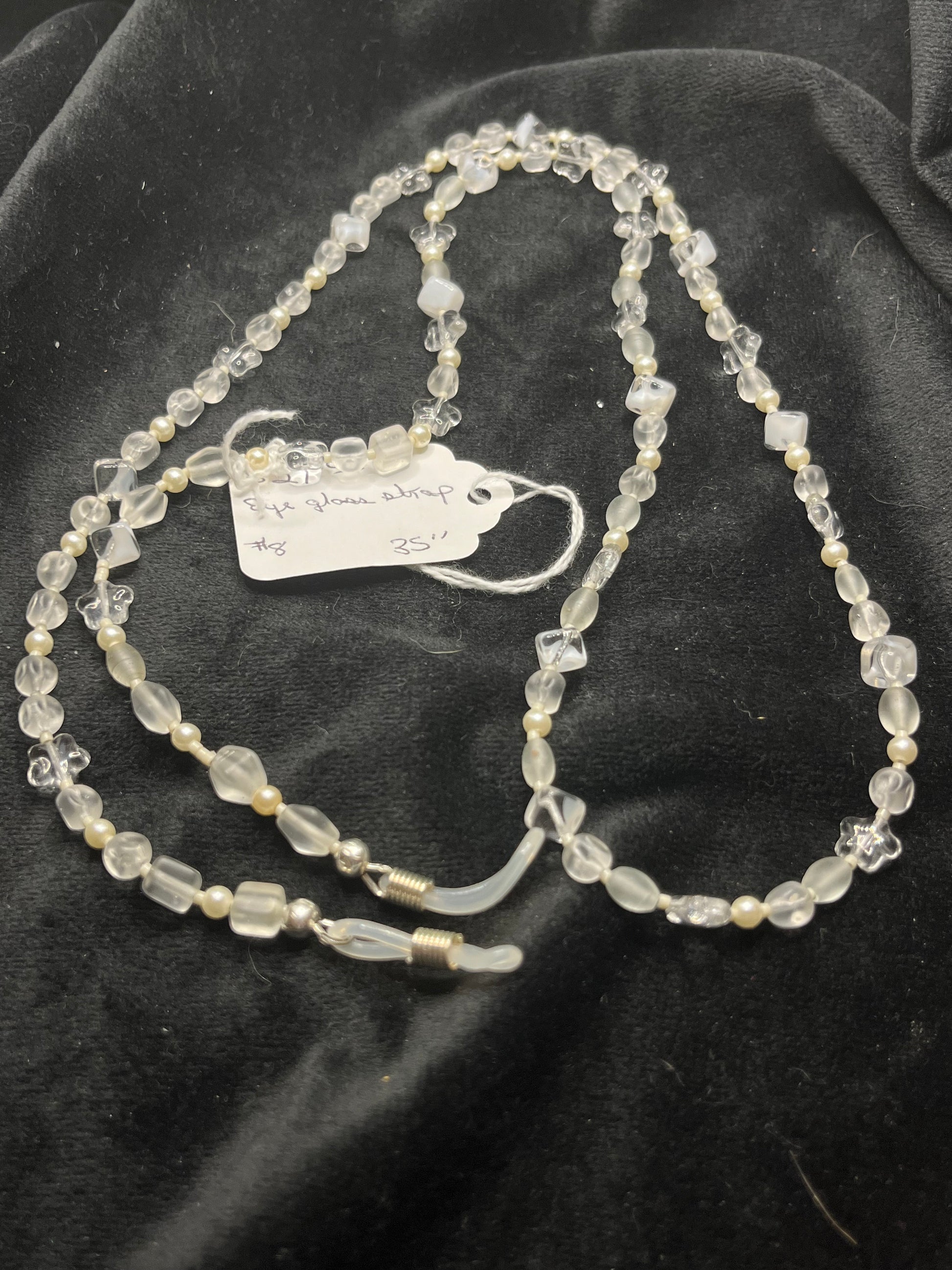 Clear white bead eyeglass strap, 35”