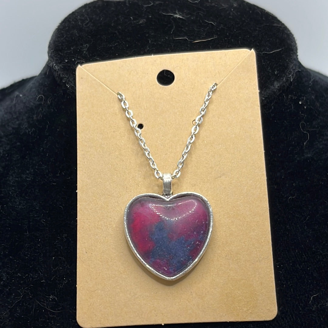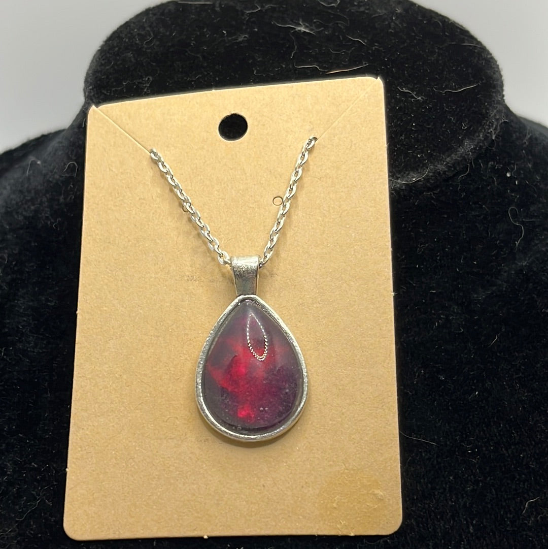 These necklaces have a sterling silver chain. They have charms with galaxy pictures on them. My sister took the pictures, I made necklaces out of them.