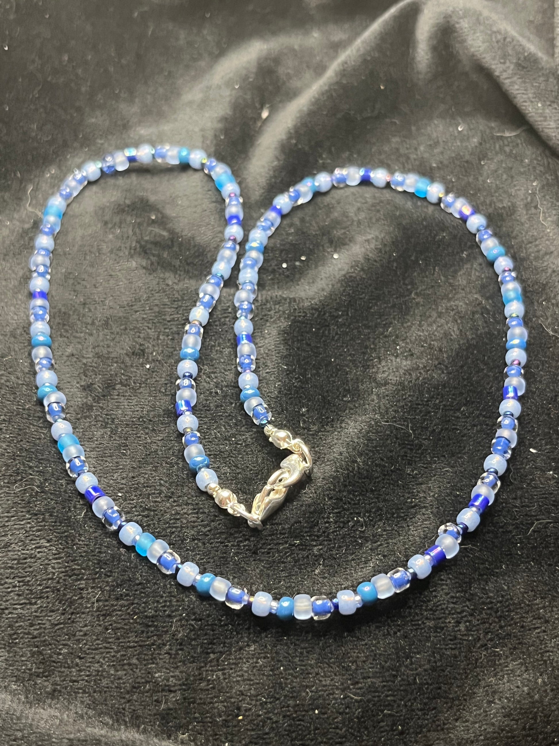 Blue beaded mask strap or necklace, double lobster claw closure makes this a versatile accessory