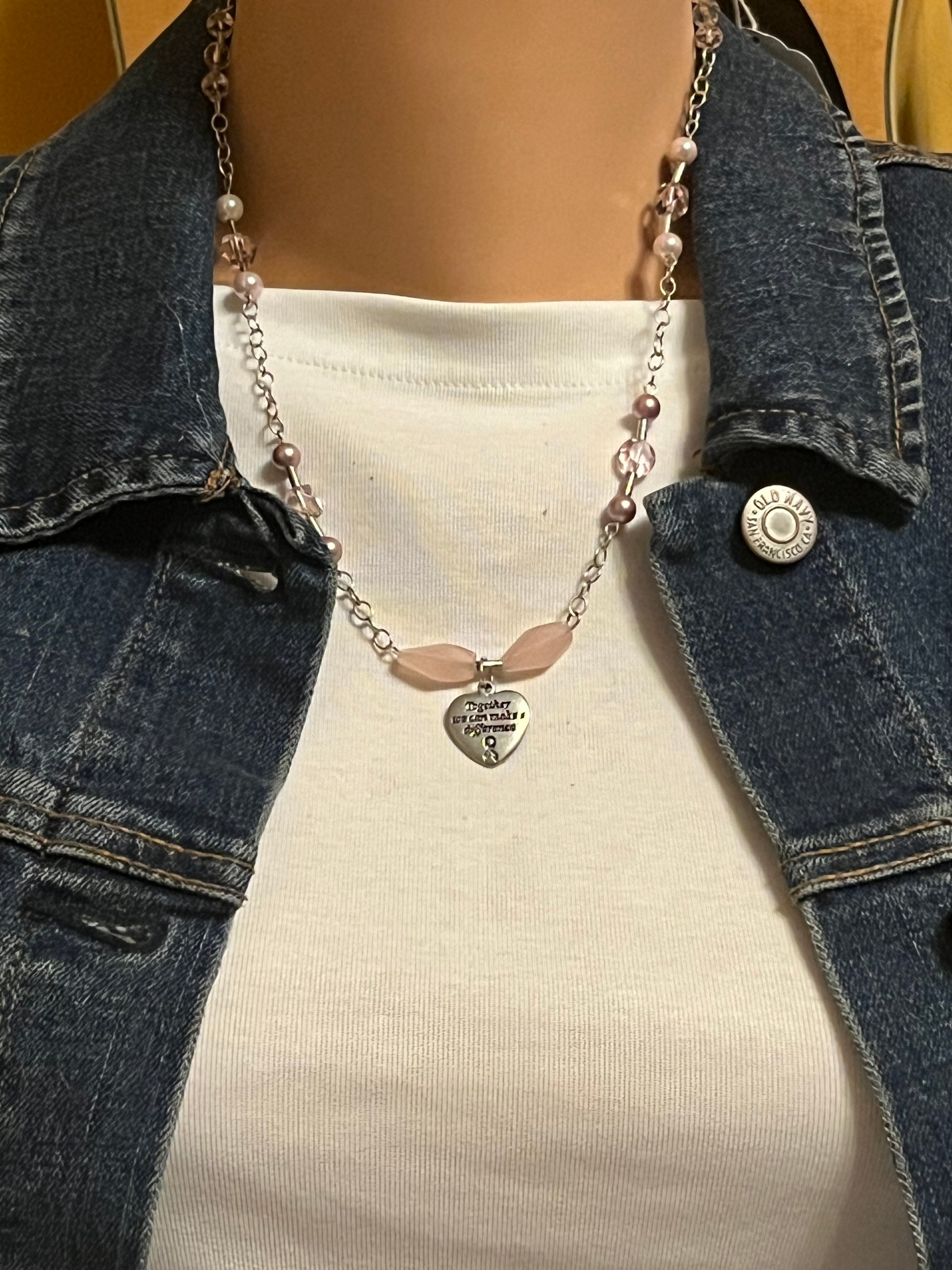 Pink ball chain, pink bead necklace with heart charm