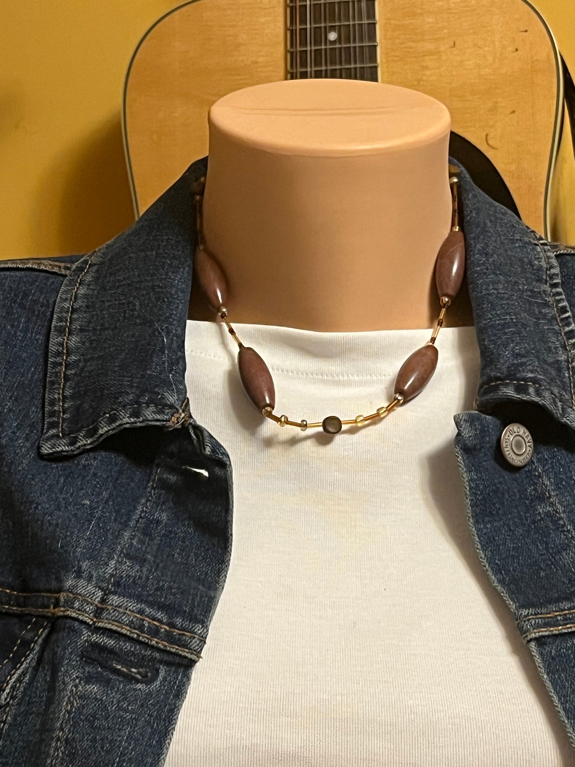 Brown toned bead necklace with large brown accent beads