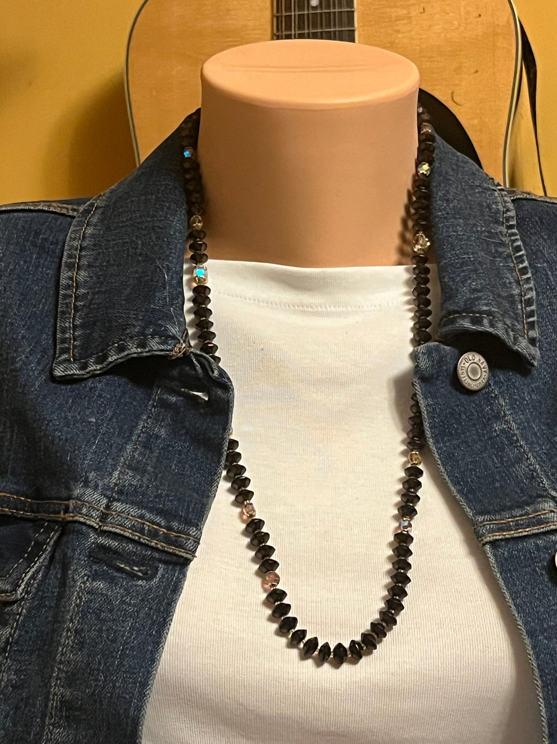 Black and iridescent bead necklace