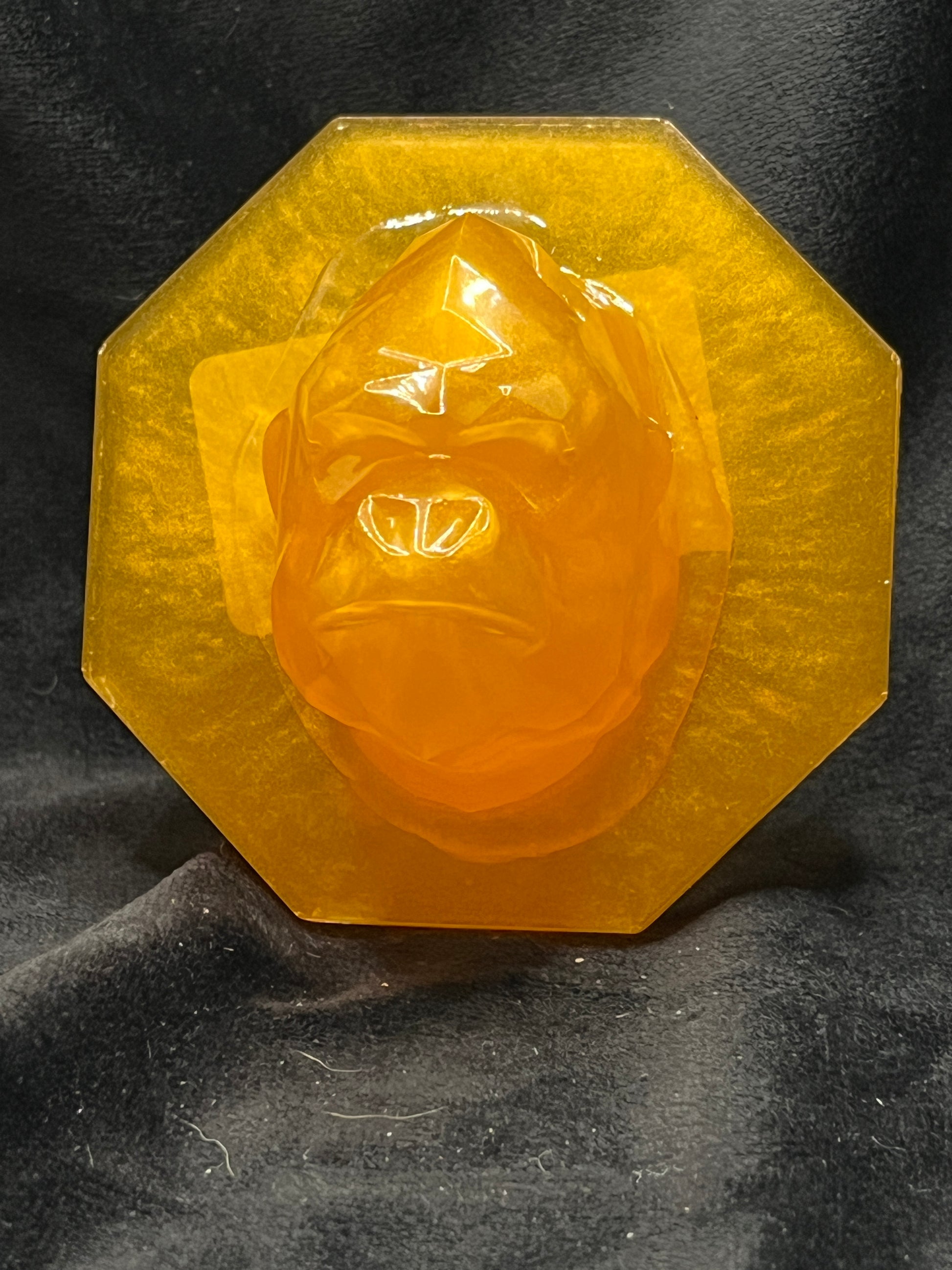 These resin animal heads are “mounted” on a coaster.