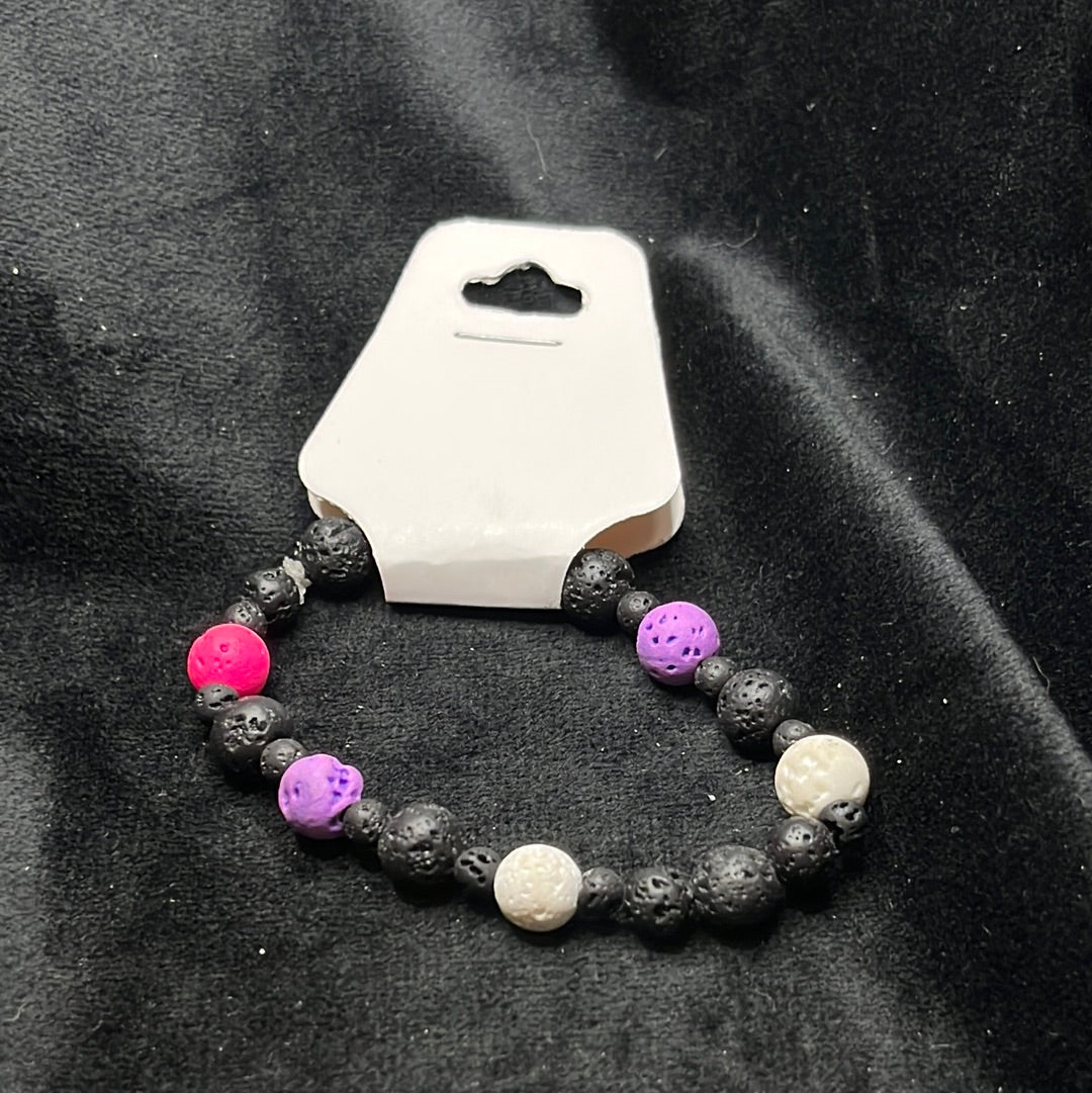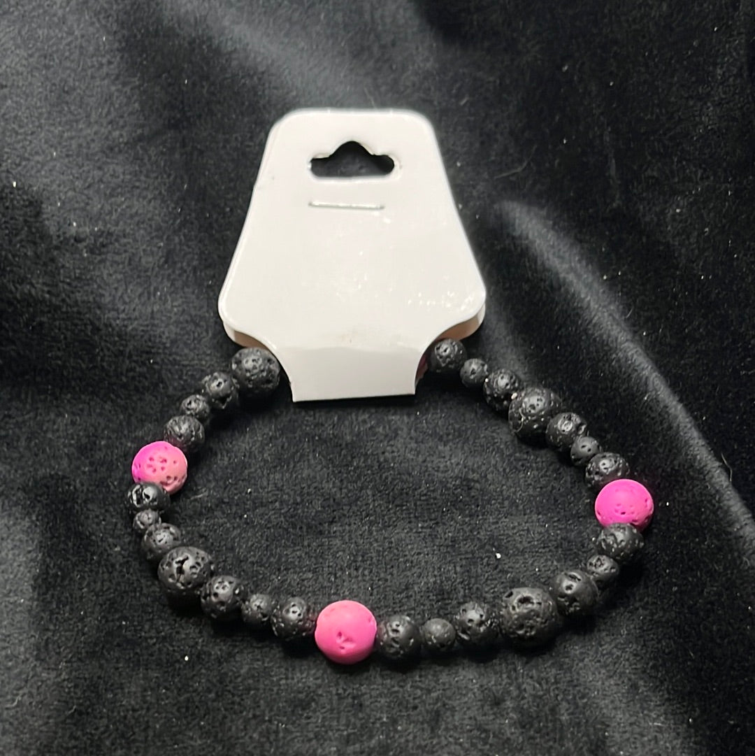These bracelets are stretch bracelets, approx. 7 1/2” around, made with lava beads and accent beads.